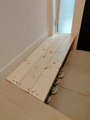 玄関に踏み台作りました。子供用を想定してましたが、意外と大人が乗っても大丈夫。