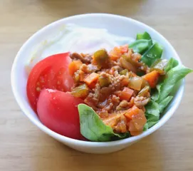 ひき肉と野菜の炒め物丼