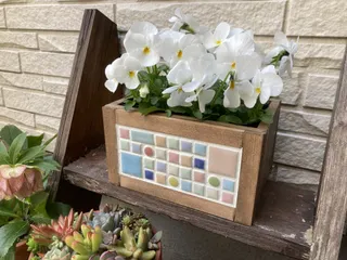 ミニプランター 100均の板でミニボックス作ってタイルを貼ってみました🎶