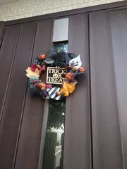 以前娘と一緒に作ったハローウィンリース😄やっと飾りました💕素材は全部100均(笑)グルーガンやワイヤーでリースにつけています😄 ☆はまたこ