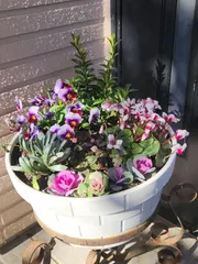 葉牡丹を入れた寄せ植えをしました✨ 家にあったらお花とカインズさんで購入した葉牡丹で寄せ植えしました💕