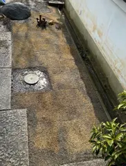 芝生貼りましたよ〜🟩🟩🟩 今日は以前椿の抜根した跡に芝生を植えようと思います。現在の様子はこんなの⬇️荒れ地です...((-_-;)💧冬なので草さえ生えてませんが、もうすぐ雑草がわんさか生えてくるでしょう(ソノマエニナントカシナクチャ💦)。昨日カインズさんに行ったらマット状の芝生が売ってたのでとりあえず2束18枚買ってきまし