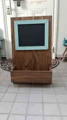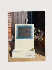 黒板付フラワースタンド 昨日のWSで黒板付フラワースタンドを作ってきました♪ 黒板は3度色塗り💨ピーコックブルーの黒板がかわいい💕 苦手なノコギリ🪚苦手な丁番がありましたが、なんとか問題なくできました👍楽しかったです😊