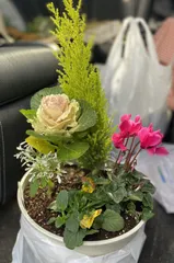 花とみどりフェスタに行ってきました。昨年しょうしんさんが挑戦していた、目隠し寄せ植え🪴今年は先着20名に入れました🙌ゴールドクレスト、ガーデンシクラメンなど5つも植えることができます🪴そしてなんと、これ❣️無料なんです😆🙌アイマスクをして、土を入れた鉢に適当に寄せるのですが、最後の仕上げは目隠しを外
