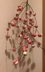 舞玉木 手作りです^ ^頂いた枝に、ちりめんで玉作り千鳥掛けで仕上げました。