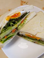 あにーさん、おはようございます🌞 私も昨日サニーレタス98円でゲット出来ました✌️ きゅうり🥒は58円🎶🎶💕。 野菜沢山のサンド、美味しいですね✨(◕ᴗ◕✿)