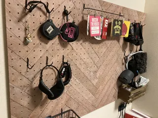最初は鍵を引っ掛けたかっただけでしたが、カインズさんのボードとパーツ、あとは100均とかでこんなになりました。ちょっとごちゃごちゃしたのでレイアウト変更予定ですが、有孔ボードはやり直しがきくので良いですね。