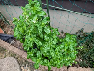 増えすぎバジル 庭のあちこちから良い匂いが… バジルです🌿 あちこちから、生えてきてます 寒くなる前に株分けして、冬はお部屋で育てて、お料理に使います 🍅料理には欠かせないハーブですね☺