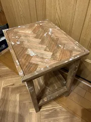 ヘリンボーンサイドテーブルアレンジ〜🫶 昨日作り、帰ってから白いペンントでシャビーっぽく汚しました。ヘリンボーン大好き〜😻工具をディスプレイ🪛朝ごはん乗せていい感じ👍