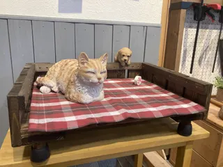 脚付きペットベッド🛏️ 脚付きペットベッドを作りました🛏️姉にプレゼントしようと作りましたが、出来上がったら、我が家で使いたくなりました(ペットはいませんが😆)結構大きめだったので、邪魔にならないかなーと連絡したら、買いたいくらいほしい!って言われました☺️嬉しい💕