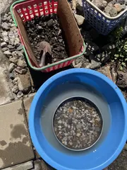 小砂利洗い ↑before↓after今日洗ったのは右下のです。大谷翔平が第1球を投げるまで、と決めてクソ暑い中始めた小砂利洗い。そしたら、思いの外捗ってしまって、中石の水洗いまで終わってしまいました。↓↑before↓after今日は、外仕事は控えた方が良さそうです。