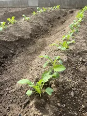 菜園の大根の様子です 9月17日に蒔いた大根の種がここまで成長しました。造成した庭の一部を菜園にして3シーズン目です。土があまり良くないのでうまく育つか心配です。