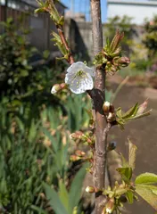 サクランボ🍒 サクランボ🍒の花が咲きました🌸去年の秋に苗木を購入して植え付けたので、まさか今年咲くとは思いませんでした😳咲くとは思わなかったし鉢植えに1本だけじゃ寂しい気がして、根元にビオラを植えちゃったんですよね💦しかもこんなに元気に咲いちゃって、ちゃんと実を付けてくれるかしら💦ビオラを移動しようかな😅