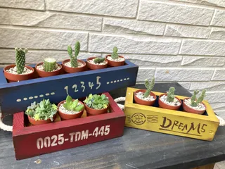 ちっちゃい子集まれ〜 ■作品内容ほったらかしだったサボテンが増えてきたので葉ざしをしました🌵鉢はコー○ンの多肉バイキングの時にもらってきたものです(直径4cm)■工夫ポイント使わなくなったWSの棚をバラして半分にカット、トレイを作りました。いろいろ組み合わせて飾れます。これなら簡単に模様替えでき、もし☆になってもすぐに入