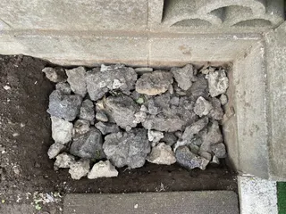 土中に隠す その7 このシリーズ?も7回目です。2度と掘り返す事は無いので、場所選びは慎重に考えてます。↓今回はコチラに。↓掘り返しました。ブロック2枚分を掘る事にしました。アイキャッチ画像のように火成岩などを埋めて。↓ブロックを戻して、園芸支柱は追って整えます。さて、その8はあるんでしょうか?
