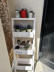 ボックス三段シェルフ 底板をネット&板で固定!WSにてボックス三段シェルフを作りました。屋根のある野外に置きたかったので底板をダイソーでBBQの網をカットしてサイドは板で固定しました。雨は掛からない所だけど、これで多肉たちも通気もバッチリです🌱下段は物入れにしようと思い、蓋と蝶番をこれから買いに行ってきまーす😊