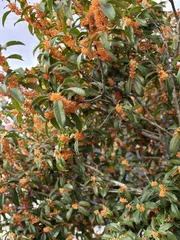 金木犀が咲いて香りを振りまいてます。どこか懐かしい香りなので、道行く人が「何か匂いがする。この花か」という話し声がします。香りのお裾分けです。今、スメルハラスメントとかあるので、香りの嫌いな人がいなければいいですが…