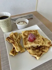 先日、ふーふーちゃんさんが投稿されていたフレンチトーストの作り方を一部真似て作ってみました。https://diy-square.cainz.com/announcements/uzwbons9pmgrepi7パンミミを切り落としたり、卵・シュガー・ミルクに浸す前にパンをレンチンするなど、いつもと少