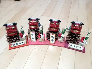 完成版!!大王松獅子舞!!! 並んでると、売れる気がしてきたのは私だけでしょうか🤣🤣🤣 🎍もオアシスや竹、水引き編んで手作りしてみました🫡