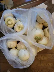 始めての夫婦二人きりのクリスマスイブ🎄 84歳の母が作った大量の『かぶ』が、帰宅したら玄関に置いてありました😅クリスマスグッズで飾り付けられた玄関に、これです❗誰がこんなに大きなかぶを大量に食べると思ったのか❗(決して丸大根ではありません)あー始めての夫婦二人きりのクリスマスイブなのに、どう片付けようか┐('~`;)┌今日、職場でもらいま