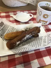 いや、謂わゆるチュロスをね、作りたかったんですよ、最初は。 でも、紫芋パウダーを消費したくて、いつものごとく途中で適当にレシピを変更したんですよ。 そしたら、全然チュロスっぽくなくなってしまってね、いろいろ。 あ、それで手前の方は焦げてるんじゃなくてね、いや、ちょっと焦