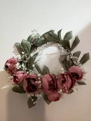 布にコテをあてて、丸い薔薇を作って、リースにしてみました。