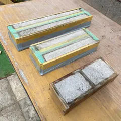 モルタル練って、コンクリ混ぜて、の続き 一昨日の作品投稿(リンク→ https://diy-square.cainz.com/announcements/se75qmkzkyazyfds )の続きです。丸2日経ったので、型枠から外します。それぞれのコンクリの外し方をご覧ください。左手の長尺のが、上手くコンクリが埋まってなかったようです。中