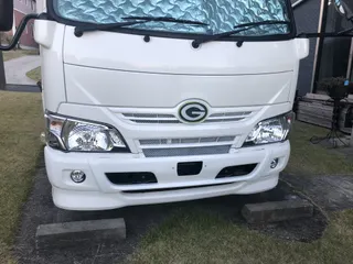キャンピングカーの隙間を塞ぐ カインズで鉄の板を購入し4個のブラケットを曲げ、取り付け用の穴を開けます、本体の隙間を埋めるブラケットをバンパーの曲線に合わせて手曲げします我が家には100ボルト溶接機があるので溶接し、錆止め塗装をしますカインズで買ったプラサブを塗布し、次にトヨタの指定外装色で塗装しますトヨタ指定だけど、車体は日野