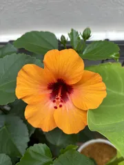 玄関開けたら咲いていましたー🌺😆 冬越しして春先に瀕死の状態になったハイビスカス🌺 復活してね😍と祈り栄養あげて環境に神経質になってあちこちに移動して復活の兆しがあった頃はもう嬉しくて肥料をあげて常に見てあげて夏に一輪咲いてそして10月に入って複数の蕾発見💡 今朝、ぱぁーーっと開いていました今日1日私の心は薔薇色