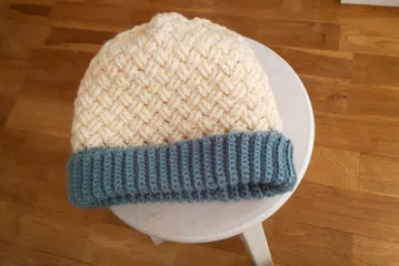 バスケット模様編みの帽子 YouTubeを見て編み物するのにハマっています☺️この編み目模様が気に入って編みました🧶この模様かわいいけど、太い毛糸で編んで失敗😅ちょっと重いぞぉ~🤣逆さにしてカバンにしちゃおうかな~