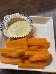 ■材料にんじん🥕マヨネーズ味噌■作り方にんじんはステック状に切ってから柔らかくならない程度にレンジでチンする。マヨネーズと味噌を少量入れマグカップで混ぜる。ディップソースの出来上がり✨ ■工夫ポイント友人から採りたてのにんじん🥕をいただいたので、ステックで食べる用のソースを手抜き大好き方法