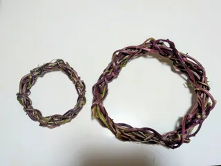 前にこのツルムラサキをもらって柔らかい部分だけ食べました😍 固そうな部分は、捨てるのもったいないのでリースにしてみました️💕 作り方も分からないので、適当😅これが乾けばリースのようになるのかな?それともふにゃふにゃになってしまうのか?笑しばらく干しておこっと😅