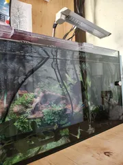 初めてのアクアリウム 初めてのアクアリウムです。水槽内に小物を配置して風景を作り上げていくのが楽しい。お魚はテトラ一匹だけなので寂しいですが大事に育てて行きたいと思います。