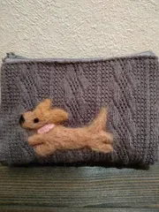 羊毛フェルト 第2弾‼️ 100均ポーチと羊毛が余ってたので、第2弾を作りました😊‥‥‥が、まだまだ恥ずかしい出来栄えです😅何犬🐶に見えますか⁉️👀👀