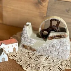 テープカッターリメイク完成❣️ 100均のテープカッターリメイク完成しました❤️ ベースの色はターナーミルクペイントのヘンプベージュ こんなのにモルタル貼り付けたの初めてだから剥がれないか心配だけど、今はしっかり貼り付いてます🔰でも落っことしたら終わりなので、移動は注意ですねー⚠️空間物足りなくてアンテ