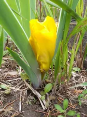 種類は分からないけれどアイリス、職場の花壇に、あにーが3年くらい前に植えたんだけれど、「誰がちぎった??」ってよく見たら、茎が無いのょ😱こんな状態初めて😅