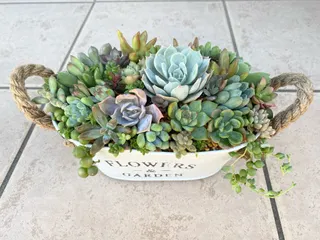 寄せ植えをお直ししたよ お友達の寄せ植えが夏に痛んでしまって、カット苗を足して寄せ植えし直しましたー。