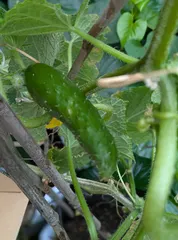 10月のキュウリ🥒 夏から育てているキュウリもそろそろ終わりかと思いきや、まだ花が咲いてました。そしてちびキュウリが出来ています。もう少し収穫出来ると助かります😆(先日、このキュウリの葉にカエルがいたので投稿しましたが、数名の方がキュウリの方にも注目して下さってたので、なってる姿投稿しました😊)