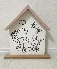 おうち型雑貨 プーさんが大好きな子どものために、おうち型雑貨を作ってみました🐻 作ったといっても100均で買った木材を切って組み立てて、ステンシルをしただけ😅 わかりにくいですが、ステンシルは黒ではなく茶色で柔らかい印象になるように工夫しました☺️