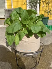 こんなに大きくなりました(小松菜) ホームセンターで、8月18日に植えた小松菜大きくなりました。いつもなら秋ぐちに種を撒くのですが、夏に撒いてきました。 いつもなら秋に畑に『すじ撒き』ですが、今回は一つの穴にひと種を撒いて間引きをしなくてすみました🤭