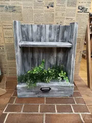 アレンジアワード2022【カントリーなシェルフ】 店舗限定『カントリーなシェルフ』見本みて一目惚れ✨😍✨ 塗装はヴィンテージをイメージして塗りました。思った通りになり大満足❤️このくらいの物を購入しようと思ったら、かなりのお値段になりますがWSのリーズナブルな価格に感謝です😆🎵🎵引き出しには大切な物や小物を入れ台にはグリーンや写真など何を飾ろうかな