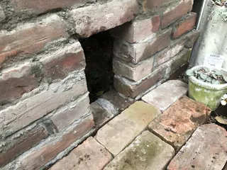 お庭を綺麗にする計画(11) ♪ お庭を綺麗にする計画、2段花壇が出来上がって、次はベランダのボロ隠し。ラティスを設置、その下の隙間は古いレンガを積みましょう。 ちまちまとーちまちま・・・やっていたら、昨日の夕方!コンクリ打ちしてた旦那さんからバケツ🪣いっぱいのモルタルをもらいました。というか余ったのを片付けるのを押し付け