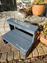 フラワースタンド2段 先日作ったフラワースタンド。母へのプレゼントだったのですがなかなかステンシルを入れる時間が作れず、ようやく完成しました😅リクエストのアイアンブルーです。どうやら母のお気に入りカラーになったらしい😆すこし、滲んだ…💦あとひと作品、母へのプレゼントの作品があるのですが、ステンシルはまた後日😅
