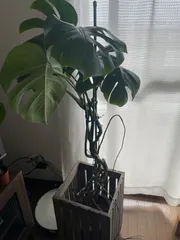 モンステラ 以前ワークショップで作ったダストボックス!!他に使い道はないかなあと、、モンステラの鉢を入れたらピッタリ(°▽°)しかもおしゃれになって良い感じです🙆