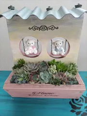 おうち型プランター ガーぁさん、お待たせ〜〜❢出来上がりましたよ。ブランコ試行錯誤で頑張りました😉。きっとがーぁさんには簡単にできちゃうんだろうなぁ…😅。今朝早く庭にある多肉達の中から選んで寄せ植えました。何しろ自前の多肉ちゃんたちなのでパッとはしませんが、なんとか様になったかな!?す