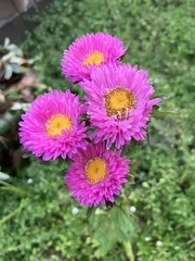 アスター よくぞ、日当たりの強い南側のお庭で咲いてくれました。 百均の種でいくつか撒いたんだけど、たった一株だけ。 色んな種あったのに、暑さで出て来なかったのかな。