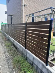 庭のフェンス塗り替えました 3年以上経ったので板が古くなり見た目もボロボロに、、色を暗めのウォルナットにして塗り替えてみました!