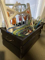 アレンジアワード2022 ウッドコンテナ ワークショップでウッドコンテナ作りました〜!取手とコロを付けて洗濯干しグッズボックスとなりました。スタッフの方が取手とコロをつけるのに合うネジを探して頂いて思い描いたものになりました。感謝です☺️しかし、洗濯ばさみがおさまらず😭自宅で家にあった木製のコンテナを付けて立派になりました〜笑