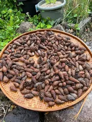 せっかく作ったハーブガーデン、雨の跳ね返りが酷くて花が泥だらけになることが判明したので跳ね返り防止に松ぼっくりを拾ってきて敷き詰めてみました。https://diy-square.cainz.com/announcements/6unci1oeraqvn5di乾いて開いたらこんな感じさて、昨夜は大雨