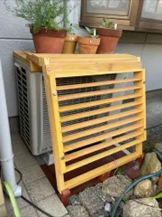 室外機の日除け・後編(完成) 5月11日投稿の前編(リンク→ https://diy-square.cainz.com/announcements/alxuuvwhgutzvyxk )に続いての後編(完成)です。実際の日の当たり方を確認しながらの作業になりました。室外機の送風に影響を与えないように日陰を作って行く作業になります。